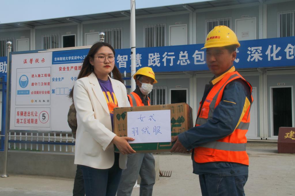 接受捐赠衣物的工人代表表示,吉财青年学生的爱心之举,不仅为工友们解决了换季时缺衣少裤的困难,也把吉财青年浓浓的情意带到了施工现场,把温暖送到了工友们的心坎上。他们表示工友们一定尽自己最大的努力,把校园建设得更加美丽。