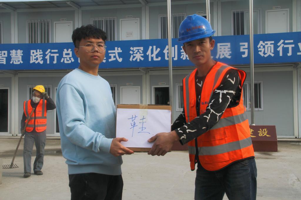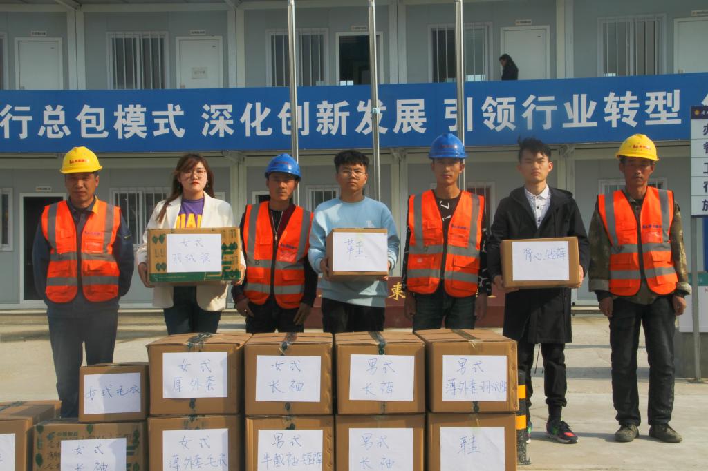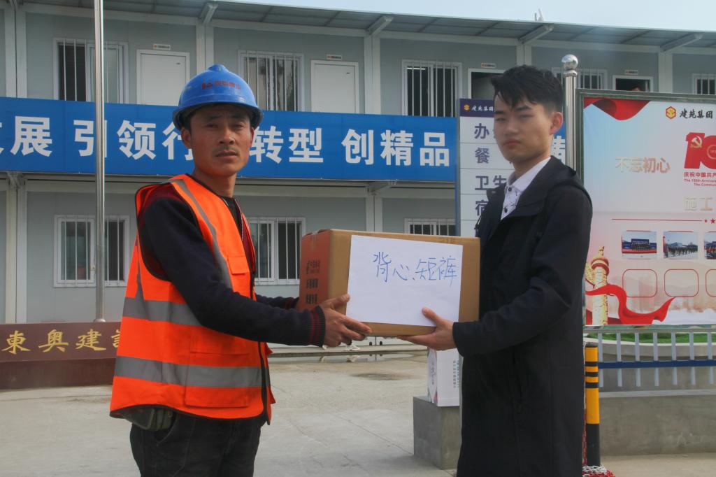 为解决学校新经济(数字经济)创新创业实训中心施工工人换季时衣物紧缺的困难,保障工人安心建设施工, 2021年5月,Beat365中文官方网站学生会联合各学院学生会、各青年志愿者协会发起“你为我建设美丽吉财 我为你送去初夏温暖” 捐赠衣物活动。5月10日下午,捐赠衣物活动在双创中心施工现场举行,副校长于金欢、后勤保障处处长李印俊、校团委书记刘成立以及建筑工人代表、学生代表参与了捐赠活动仪式。青年学生们本着“团结互助,爱校如家”的精神,齐心协力,积极合作,分工明确,各司其职,共筹集衣物300余件,为施工工地工人送去温暖。14箱满满的包裹是财大青年满满的爱心,负责整理这些衣物的同学们介绍,他们一周前就按季节、厚薄、材质对衣物做了细致地分类整理,在晴朗天气时统一进行了清洁和晾晒,确保捐赠的每一件衣物干净、整洁、卫生。青年学生们用实际行动践行了“奉献、友爱、互助、进步”的志愿服务精神。