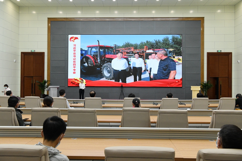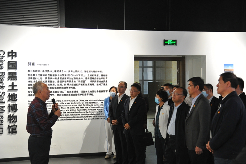 最后,学校领导马尚、孙杰光、赵惠敏、邹永亮、岳宏、刘鹤、于金欢同党员干部一同前往四平市梨树县,参观了中国黑土地博物馆。黑土是地球上最珍贵的土壤资源之一,东北黑土具备农林牧全面发展的自然条件,是我国商品粮生产和农林牧综合发展的重要基地,是国家粮食安全的“稳压器”,对于我国粮食战略具有举足轻重的作用。习近平总书记于2020年7月22日来到四平市梨树县国家百万亩绿色食品原料(玉米)标准化生产基地核心示范区、卢伟农机农民专业合作社,了解粮食生产、黑土地保护利用、农业机械化规模化经营等情况。他强调,要认真总结和推广,采取有效措施切实把黑土地这个“耕地中的大熊猫”保护好、利用好,使之永远造福人民。学校领导向博物馆馆长详细询问了黑土地的生产与经营等情况,希望梨树粮食产量能够逐年提高。通过在中国黑土地博物馆的参观学习,大家更加深入地了解了黑土地与粮食生产的情况,从而为更好地服务吉林经济高质量发展贡献吉财智慧和吉财力量。