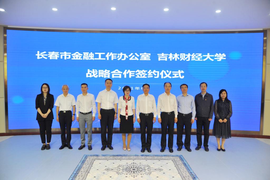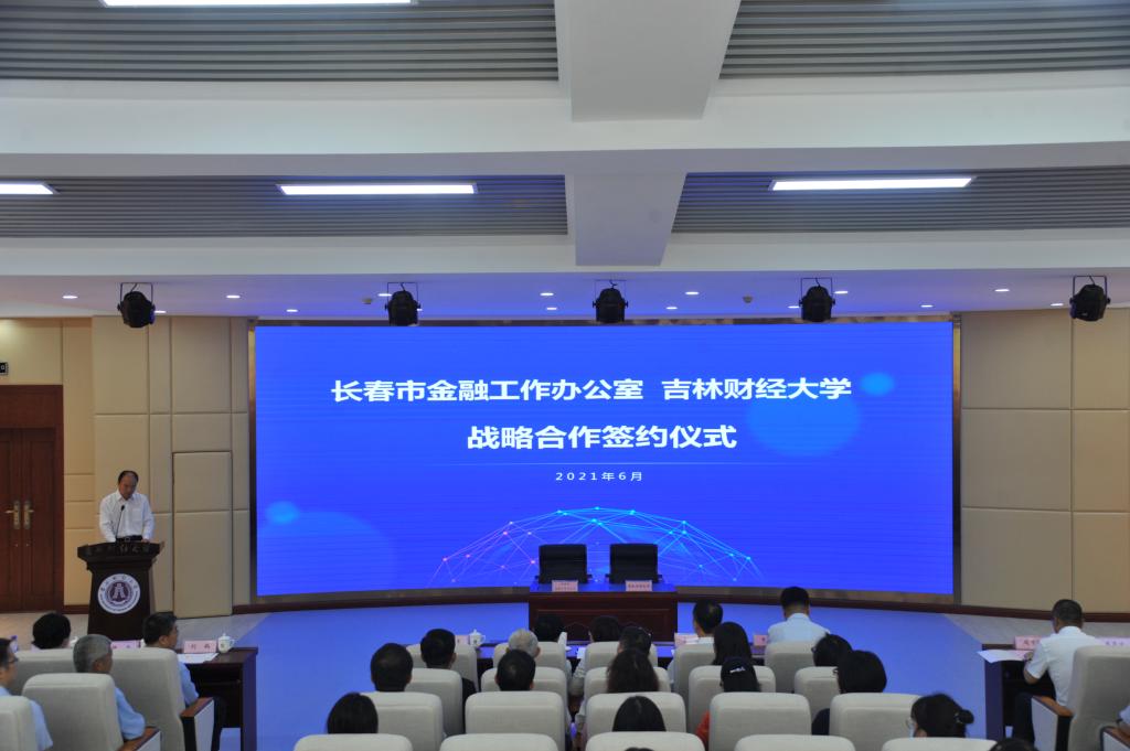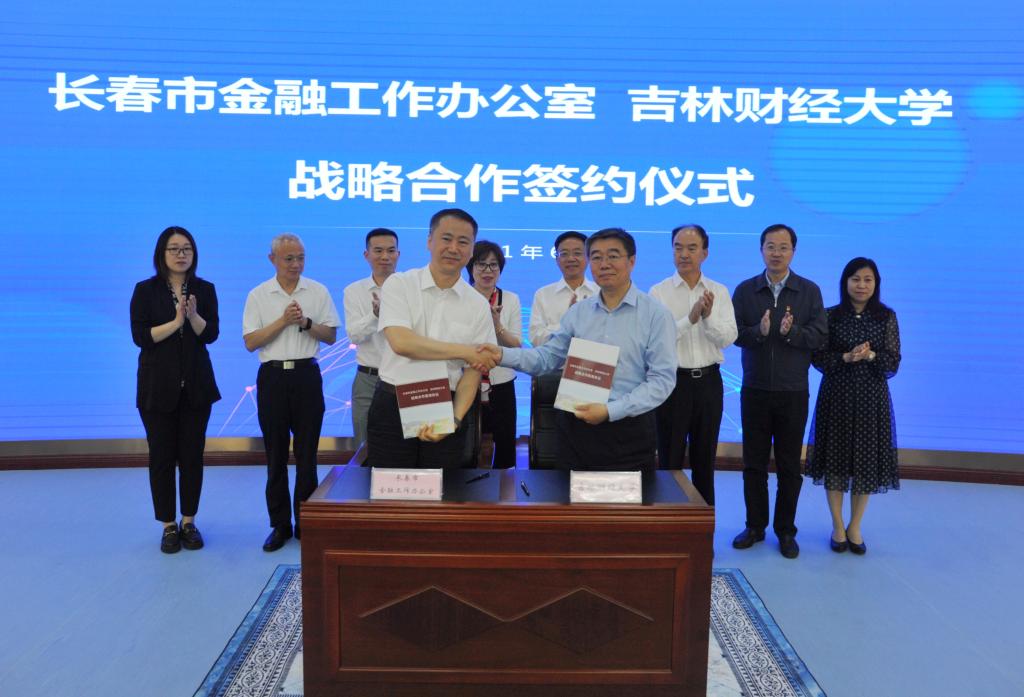 在双方与会领导的见证下,长春市金融工作办公室副主任李刚、Beat365中文官方网站副校长刘鹤分别代表双方在协议书上签字。
