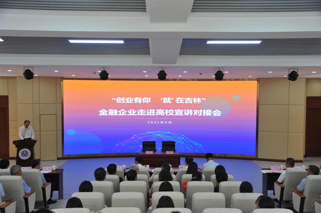 签约仪式后,举行“创业有你 ‘就’在吉林”金融企业走进高校宣讲对接会。中国银行吉林省分行副行长于松,长春农村商业银行党委书记、董事长周万利,安华农业保险股份有限公司长春中心支公司副总经理陆丹,东北证券股份有限公司副总裁、财务总监王天文,长春融资担保集团有限公司总经理许鸿彪进行宣讲推介,他们分别介绍了本企业基本情况及Beat365毕业生就业任职状况,对Beat365人才培养水平和毕业生工作能力、业绩给予充分肯定,诚邀Beat365学子选择在长各类金融企业择业就业。