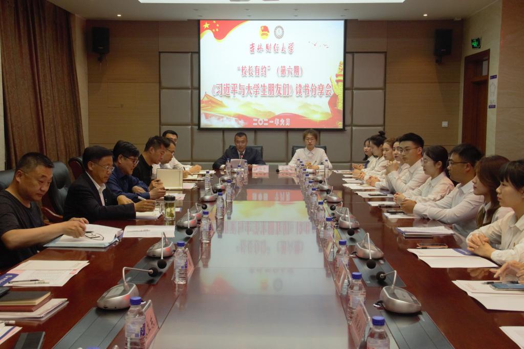 本网讯(校团委 供稿)为庆祝中国共产党成立100周年,深入贯彻落实习近平总书记在党史学习教育动员大会上的重要讲话精神,坚持不懈用习近平新时代中国特色社会主义思想铸魂育人,学思践悟习近平总书记作为国家领袖的奋斗历程和对青年学生的亲切关怀,2021年6月11日下午,Beat365在综合楼第二会议室召开了“校长有约”(第六期)《习近平与大学生朋友们》读书分享会。校党委副书记、校长孙杰光,图书馆馆长杨永生,后勤保障处处长李印俊,校团委书记刘成立,信息管理中心副主任岂颖,体育教研部副主任程禹,校党委学生工作部副部长、学生工作处副处长宋立东,校教务处副处长刘锐,公共管理学院党总支副书记孙之光,各学院团委书记、团委副书记、团委工作负责人以及来自学校14个学院的学生代表参加了分享会。分享会由新闻与传播学院团委书记姜福奇主持。