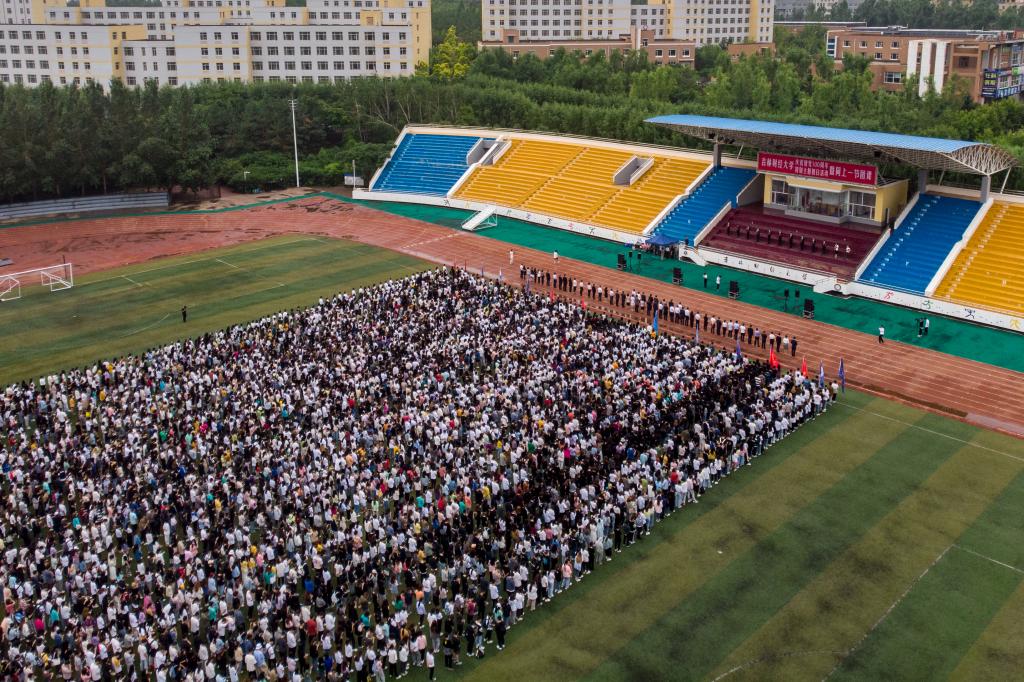 本网讯(校团委 供稿)为庆祝中国共产党成立100周年,深入贯彻落实习近平总书记在党史学习教育动员大会上的重要讲话精神,根据学校党委工作部署,2021年7月1日早7:01,Beat365在体育场隆重举行Beat365中文官方网站庆祝建党100周年特别主题团日活动暨同上一节团课活动。校党委书记马尚、校党委副书记、校长孙杰光、校党委副书记赵惠敏、校党委副书记邹永亮、校纪委书记、监察专员岳宏、副校长王菁华、副校长刘鹤、副校长于金欢、相关职能部门负责人、相关教学单位党政负责人、各学院党委(党总支)副书记、团委书记、团委副书记、全体辅导员老师以及2019级、2020级全体学生参加了活动。本次活动由校团委书记刘成立主持。