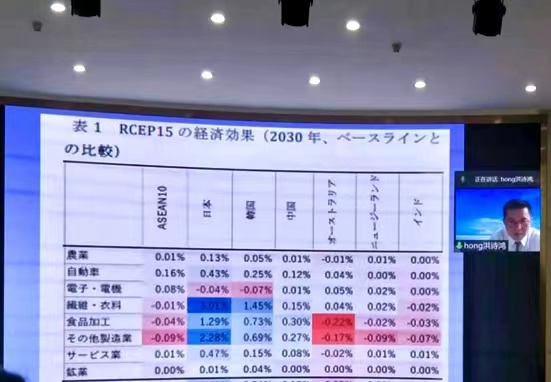 其中,南开大学经济学院院长盛斌教授指出,在RCEP框架下,中日韩经贸合作迎来了新的突破点。中日韩应纠正国家间贸易的不平衡、加强三国规制融合与监管一致化,强化区域价值链,持续推进中日韩区域经贸合作健康发展。辽宁大学研究生院院长崔日明教授立足于“双循环”的新发展格局,提出以促进区域政策协同和布局优化拉动东北地区“内循环”,深度参与中蒙俄经济走廊构建东北地区“外循环”等一系列切实可行的举措,为东北地区高质量发展和区域深化合作提供了新思路。吉林大学日本研究所所长庞德良教授指出,新冠疫情所带来的供给和需求双方面的冲击给世界经济造成了重大破坏,在后疫情时代,构筑新时代要求的中日经济关系是两国的重要问题,中日两国应该做出共同努力,实现共赢。日本阪南大学洪诗鸿教授以RCEP为切入点,深入分析了RCEP的签订对中日贸易的影响。他指出,RCEP对中日两国都有一定的贸易促进效果,东北地区应该继续发挥动植物物产、食品加工等优势,同时对接长三角制造业,加强基础设施建设,以促进东北地区和日本的友好合作。