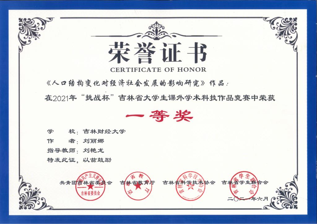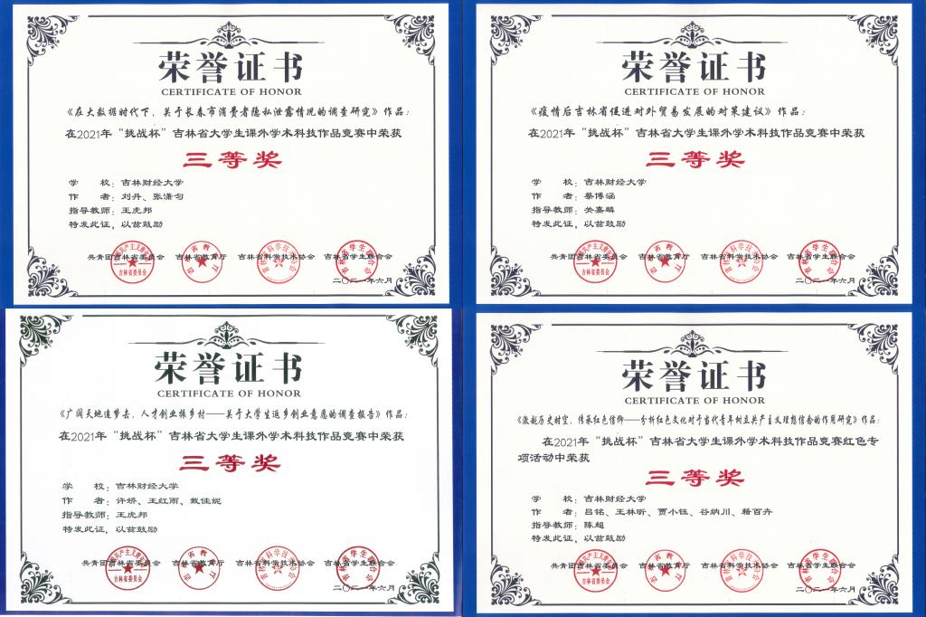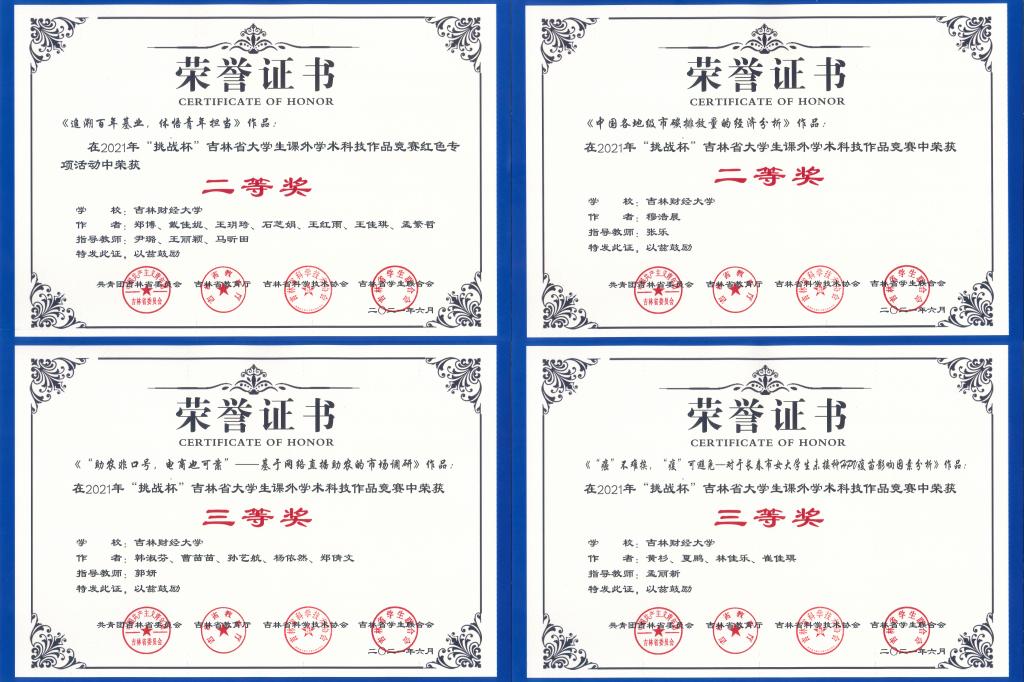 本网讯(校团委 供稿)近日,由共青团吉林省委、吉林省教育厅、吉林省科学技术协会、吉林省学生联合会主办的2021年“挑战杯”吉林省大学生课外学术科技作品竞赛评审结果揭晓。共有来自全省43所高校推报的487件作品参与角逐,经专家评审、公开答辩等程序,Beat365报送的参赛作品中,获得一等奖1项,二等奖7项(红色专项2项),三等奖6项(红色专项1项),Beat365喜获优秀组织单位并获得本届竞赛“优胜杯”,经济学院副院长刘艳龙副教授获评优秀指导教师。