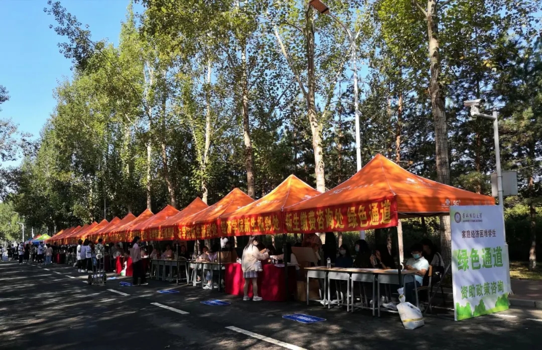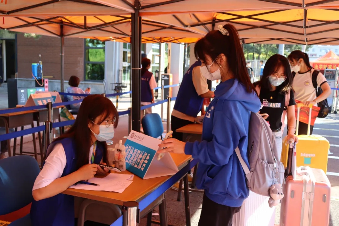 为确保迎新各项工作安全有序进行,学校精心做了安排和布置,分别在南门、东门设置报到点,并在火车站设置了新生接待点。2021级新生到校后首先通过报到通道进行体温测量、消毒、查看核酸检测报告、查验“吉祥码”和“通信行程卡”、扫描“报到码”、进行新生录取资格审查,全部合格后进校到所在学院办理报到手续。随后,新生在迎新志愿者的陪同下取行李进入宿舍,并陆续办理个人照片信息采集、适龄男生兵役登记查验、家庭经济困难学生入学绿色通道、学费缴纳、户籍迁移等相关事宜。