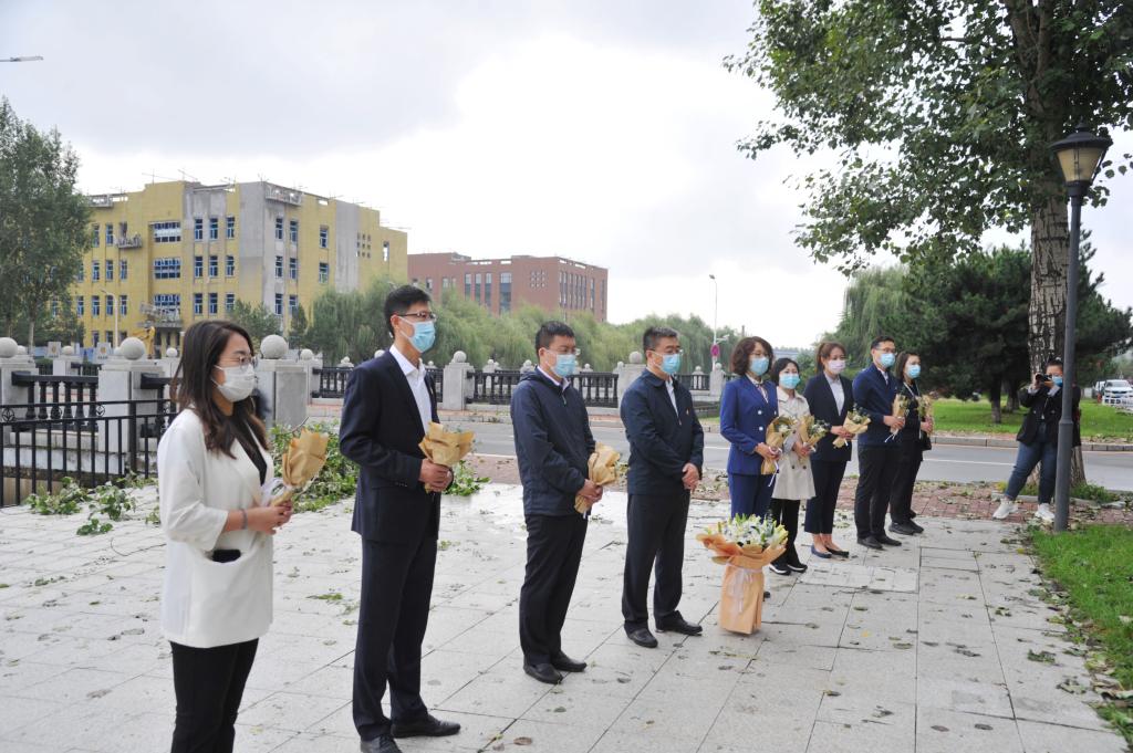 本网讯(学生记者 刘欣然 摄影 侯冠宇 崔悦)9月10日上午,在副校长刘鹤的带领下,党委教师工作部、研究生学院、教务处、教发中心负责人和青年教师代表到吕金华老师塑像前献花。