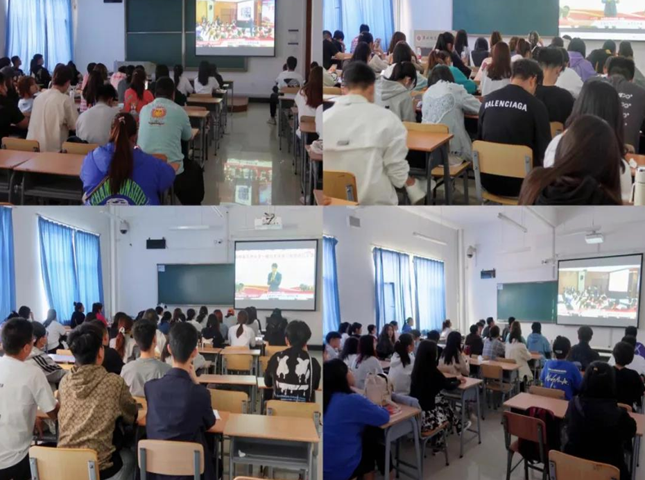 学校对此事高度重视,各部门协调合作,教务处统筹安排,学工处组织学生,信息管理中心提供技术支持。学校在综合楼第一会议室设立主会场,校领导班子成员现场收看;在马列学院会议室、第一教学楼各教室、逸夫楼各教室设立分会场,全体思政课教师、大一学生在各自分会场统一观看;大二、大三学生通过手机和电脑在线收看。本次思政课学习活动范围覆盖14个学院,线上线下观看师生总数逾8000人。