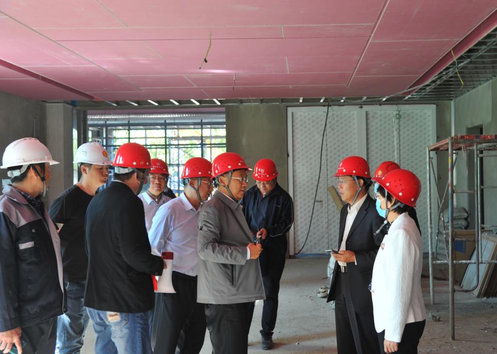 在新经济创新创业实训中心,学校领导以及相关职能部门负责人深入施工现场,对各楼层的施工进展情况和内部结构框架进行了查看,仔细询问了建设、规划、安全等方面的情况。学校领导对相关部门在新经济创新创业实训中心建设中付出的努力和取得的成绩给予充分肯定,并指出要加快工程进度,做好功能设计和设施设备的安装调试,确保新经济创新创业实训中心如期投入使用。