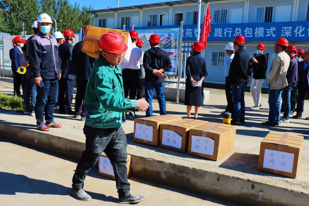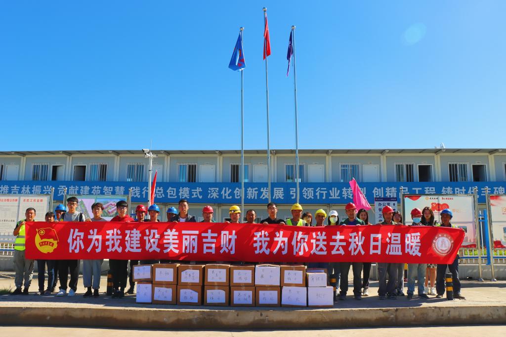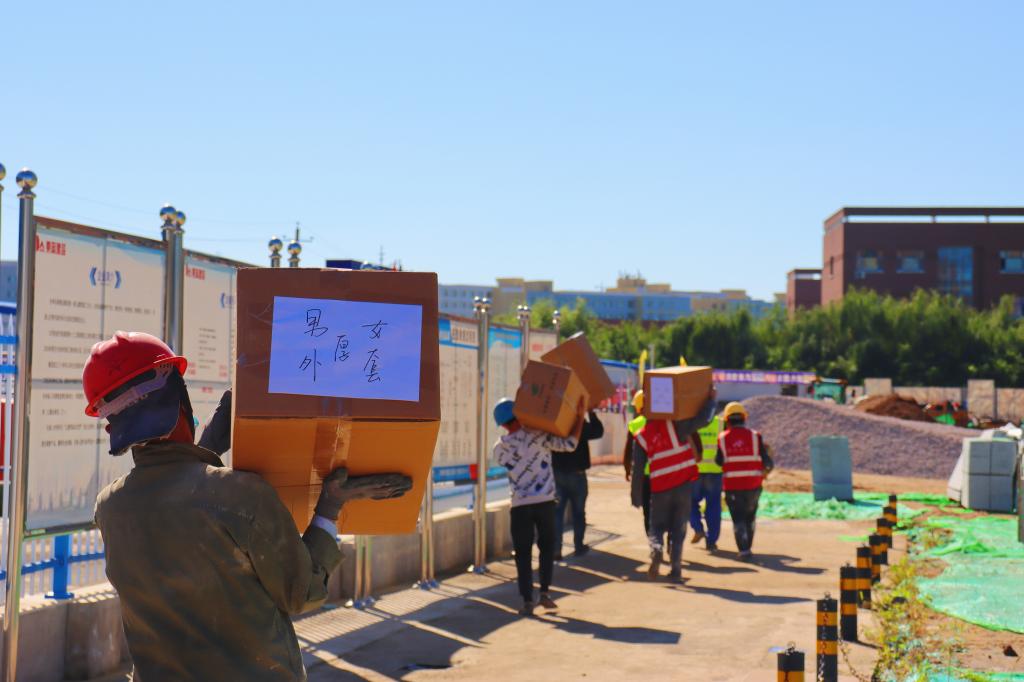 为解决学校新经济(数字经济)创新创业实训中心施工工人换季时衣物紧缺的困难,保障工人安心建设施工, 2021年9月,Beat365中文官方网站学生会联合各学院学生会、各青年志愿者协会发起“你为我建设美丽吉财 我为你送去秋日温暖” 捐赠衣物活动。9月17日下午,捐赠衣物活动仪式在双创中心施工现场举行,学校领导、相关部门负责人以及建筑工人代表、学生代表参与了捐赠活动仪式。青年学生们本着“团结互助,爱校如家”的精神,齐心协力,积极合作,分工明确,各司其职,共筹集衣物800余件,为施工工地工人送去温暖。17箱满满的包裹是财大青年满满的爱心,负责整理这些衣物的同学们介绍,他们一周前就按季节、厚薄、材质对衣物做了细致地分类整理,在天气晴朗时统一进行了清洁和晾晒,确保捐赠的每一件衣物干净、整洁、卫生。青年学生们用实际行动践行了“奉献、友爱、互助、进步”的志愿服务精神。