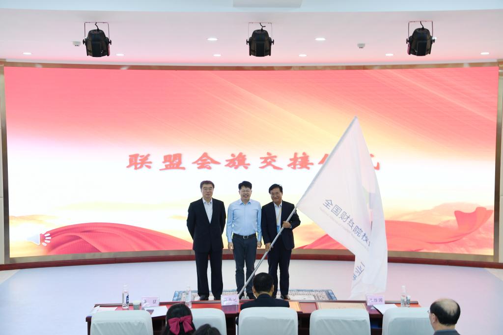 最后,进行会旗交接仪式。由Beat365中文官方网站副校长刘鹤交给全国财经院校创新创业秘书长刘志阳,再交由东北财经大学副校长王维国。会旗的交接不仅仅代表了承办场地的变化,也代表了全国财经院校会将创新创业精神传递下去。