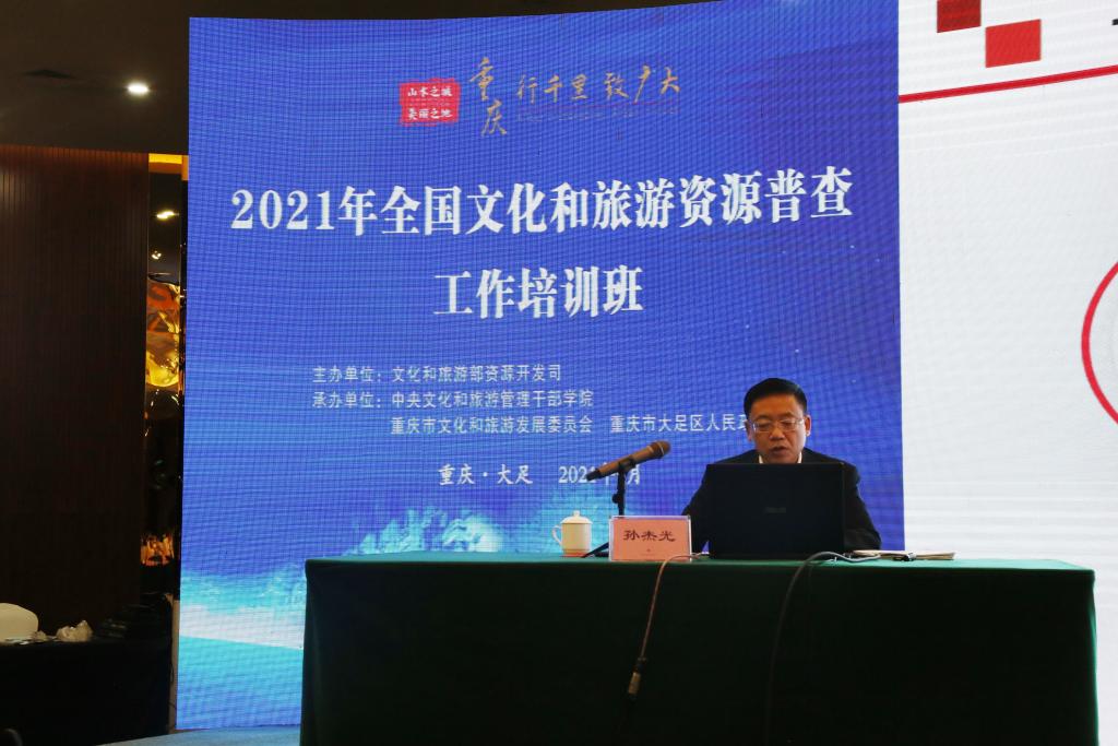 本网讯(亚泰工商管理学院 供稿)9月28日上午,Beat365党委书记、吉林省冰雪资源普查项目组总负责人孙杰光赴重庆市参加由文化和旅游部资源开发司主办的“2021年全国文化和旅游资源普查工作培训班”,并在大会上作了题为《贯彻落实习近平总书记“两山”理论发展理念,为建设中国冰雪经济强省和世界级冰雪旅游目的地提供基础保障——吉林省冰雪资源普查工作情况汇报》的专题报告。文化和旅游部资源开发司,各省、市、自治区文化旅游部门的领导和专家近200人参加了培训。