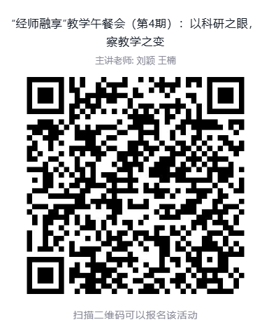 扫码报名或登录校园OA内网报名。登录校园OA内网报名进入“教发系统”模块,点击“活动报名”,选择“经师融享”教学午餐会(第4期)完成报名。