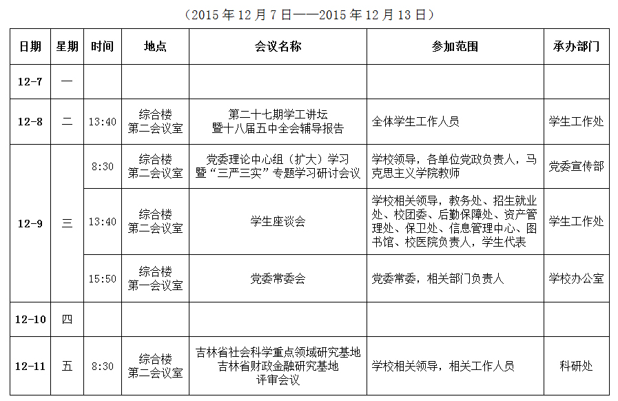Beat365中文官方网站第15周会议日程表