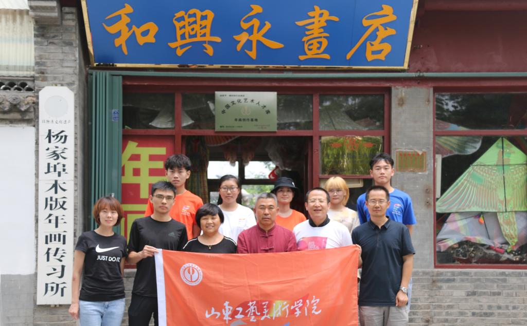 7月10日至14日,数字艺术与传媒学院“杨家埠年画创新实践小分队”暑期社会实践工作圆满完成。来自新媒体艺术专业的李传锐、王潇涵、王艺霏、刘星辰、孙晓玲五名同学,在数字艺术与传媒学院院长顾群业教授和“年画重回生活”系列课程任课教师韩明的带领和指导下,帮扶潍坊杨家埠和兴永画店创作年画新样26幅,完成《百年画店·和兴永》纪录片素材拍摄工作和《和兴永画店数字化档案》素材搜集工作,取得阶段性成果。