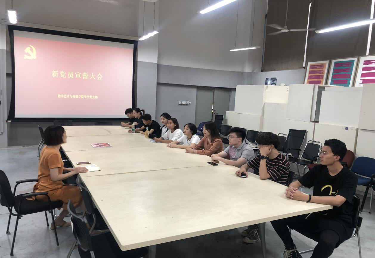 2019年9月4日下午,数字艺术与传媒学院学生党支部在综合楼四楼B446会议室举行新发展党员入党宣誓大会,学生第一党支部书记李灿主持。
