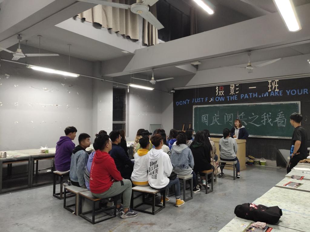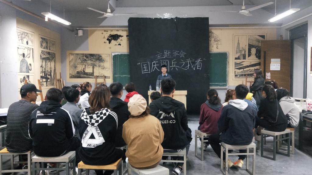 为培养大学生的集体荣誉感与民族自豪感,增强大学生的国防精神,2019年10月7日,在国庆返校后的第一个晚自习,数字艺术与传媒学院组织2019级11个班级分别召开“国庆阅兵之我看”的主题班会,班会由各班级的代理班主任支持。