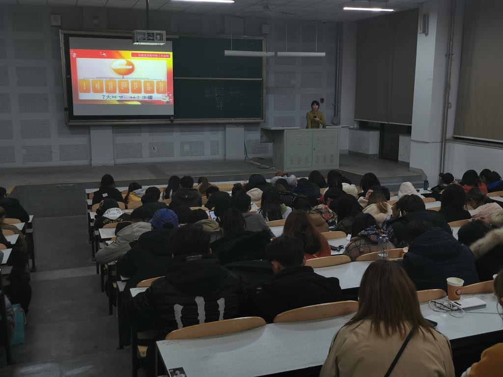 学生党支部书记李灿老师主要围绕发展党员的具体工作流程,讲述了发展党员程序的7大环节与44个步骤。其中,7大环节主要包括提交申请、入党积极分子的确定、入党积极分子的培养教育、发展对象的教育和考察、预备党员的接受、预备党员的教育与考察、预备党员转正及档案存档,同时,李灿老师又详细讲解了这7大环节中所包含的44个步骤,令同学们对入党流程有了更清晰的认识。