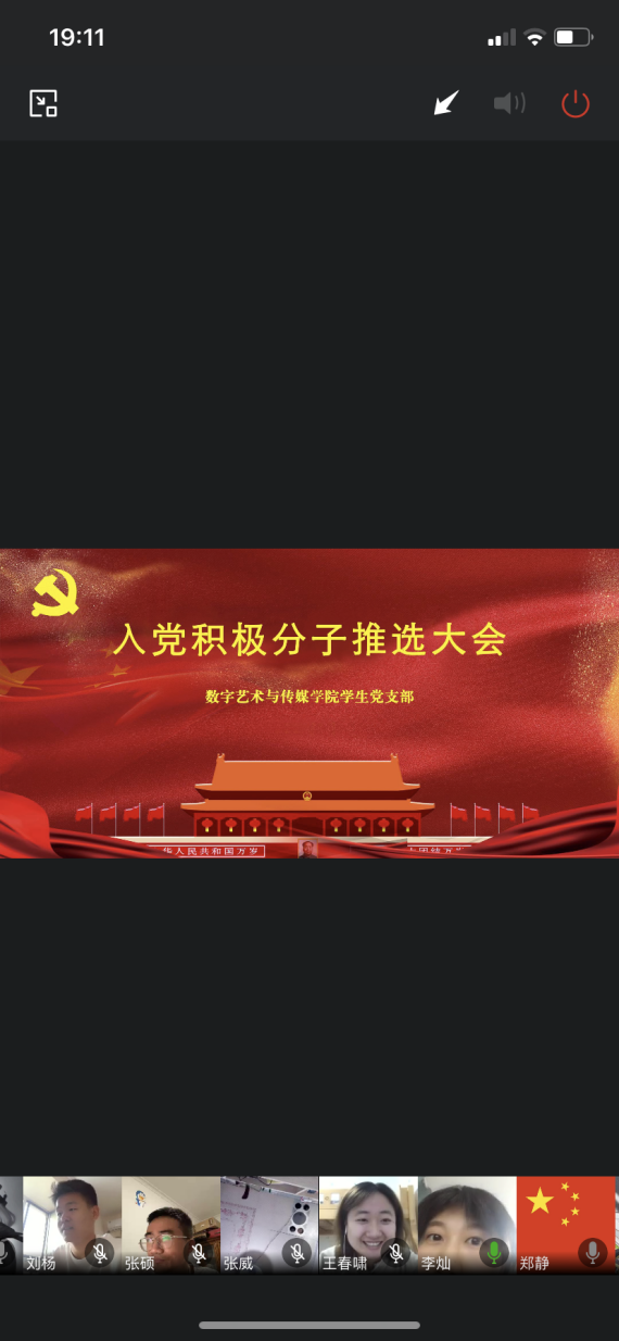 2020年5月18日,数字艺术与传媒学院学生党支部通过企业微信平台召开线上视频会议,讨论确定入党积极分子,会议由我院学生第一党支部书记李灿主持,党总支副书记李清华、学生第二党支部书记郑静以及全体学生党员参加。