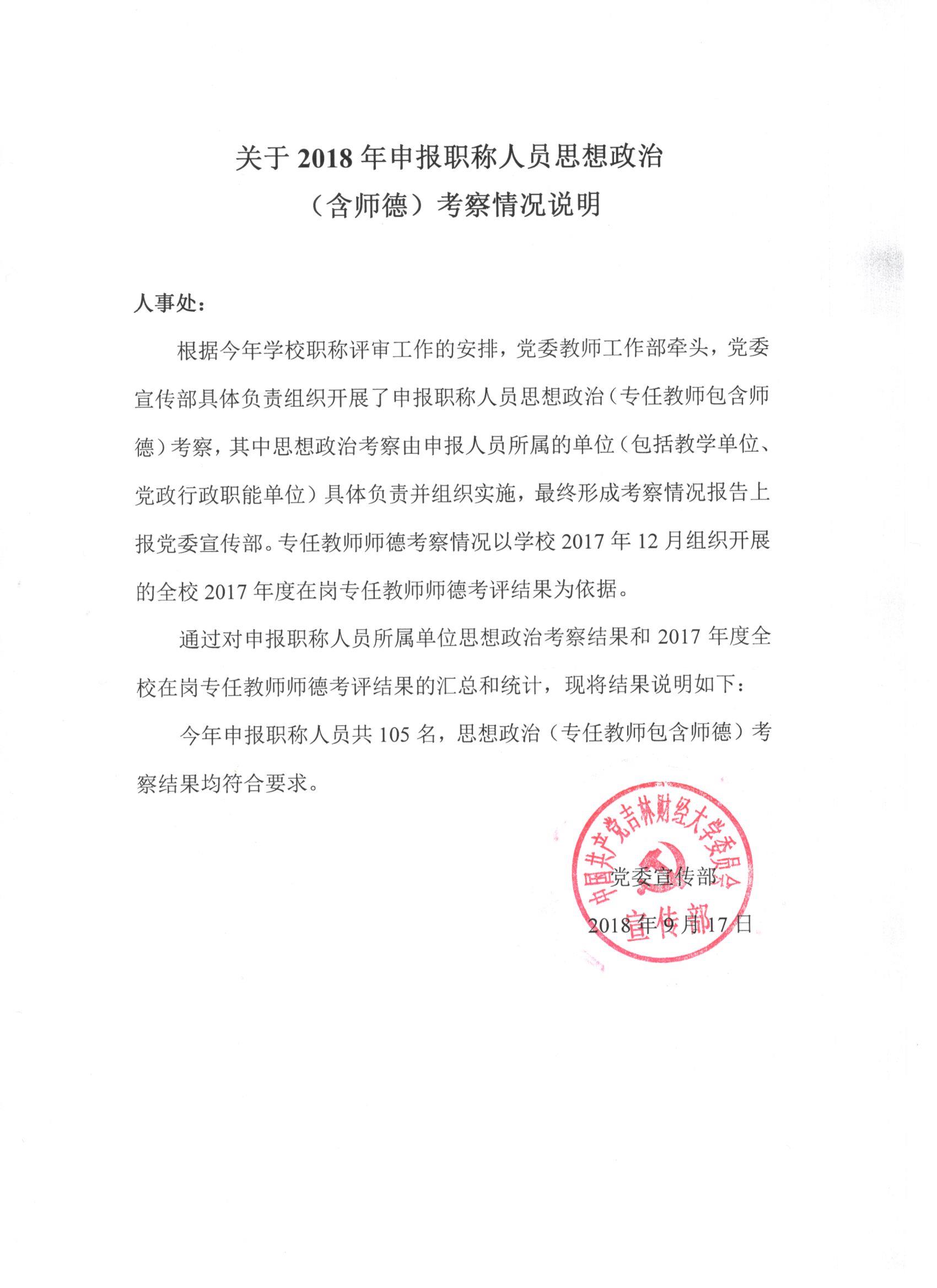 5. 关于2018年申报职称人员思想政治(含师德)考察情况说明