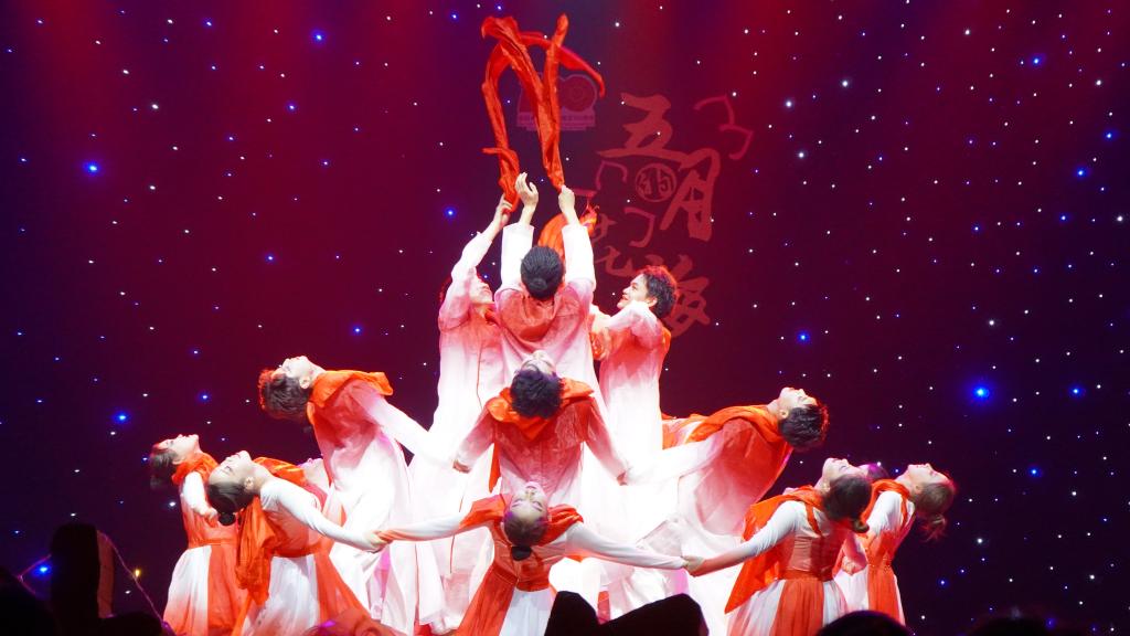 人文艺术学院代表队的舞蹈《红船》,用一根红绸化作希望、信仰、生命,生动讲述了开天辟地、敢为人先的红船精神。