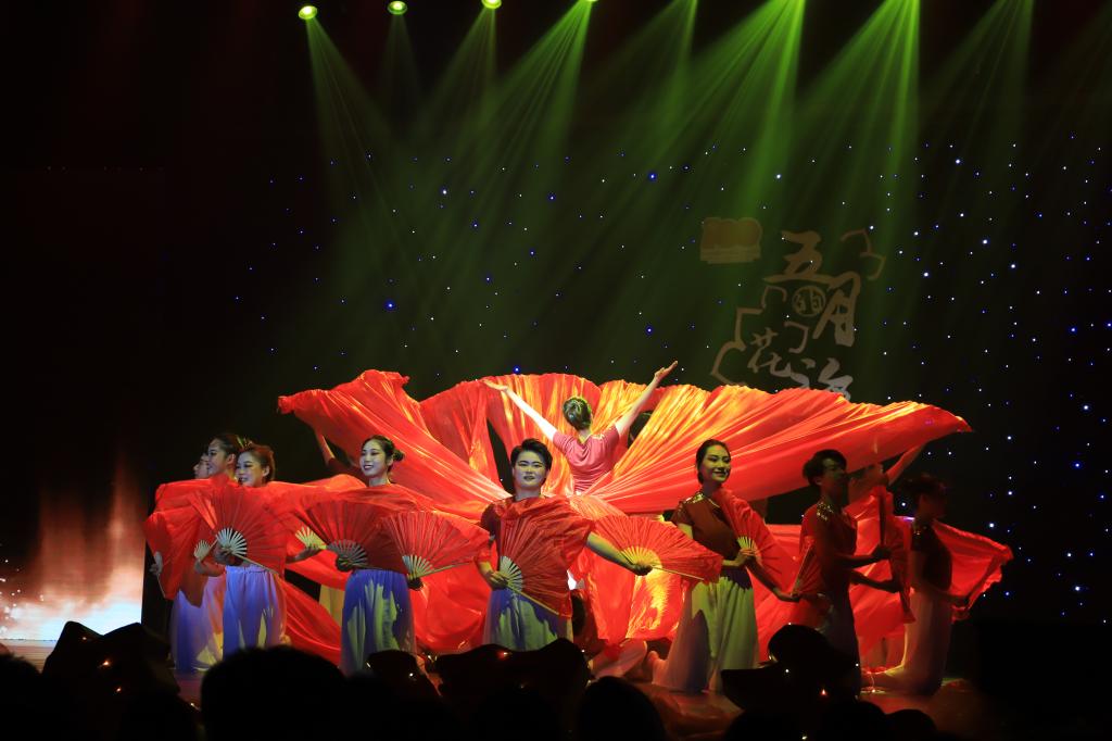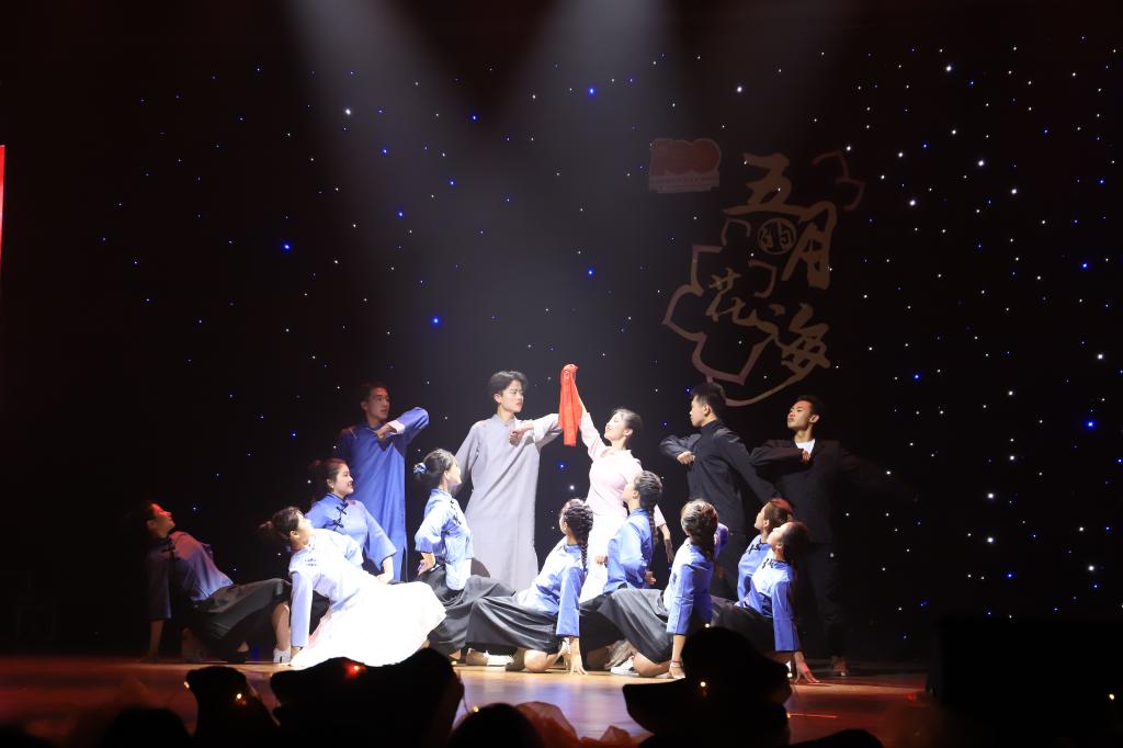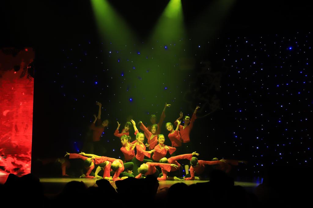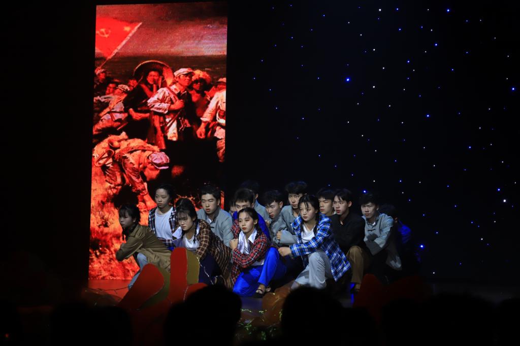 视觉传达设计学院代表队的舞蹈《映山红》,以抗战为背景,展现了红军战士英勇无畏,为了抗战胜利和新中国成立不惜牺牲的革命精神。