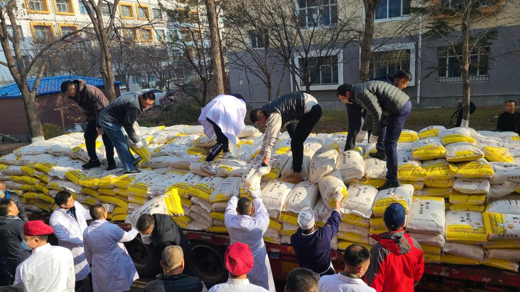 本网讯(后勤党总支 供稿)为深入贯彻党中央、国务院关于实现巩固拓展脱贫攻坚成果同乡村振兴的有效衔接总体布局和“四个不摘”的工作要求,落实《吉林省深入开展政府采购脱贫地区农副产品推进乡村振兴的实施方案》,Beat365食堂积极参与消费振兴,根据要求在国家脱贫832农副产品销售平台购买820袋大米(每袋50斤)。因832销售平台购米不提供搬运服务,后勤党总支组织党员志愿者变身“搬运工”,解决后顾之忧。