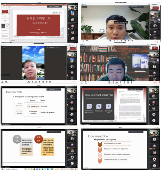本网讯(会计学院 供稿)11月4日下午18:00,四川大学商学院会计与公司金融系博士生导师,博士后合作导师,商学院研究生办公室主任,北京大学光华管理学院会计系博士后李子扬老师应Beat365会计学院邀请,以线上腾讯会议的方式为Beat365师生作题为“管理会计中的行为——来自实验研究的思考”的学术报告。本次会议由会计学院专硕教育中心主任苏宏伟老师主持,参会人员主要包括会计学院教师、2020、2021级全日制研究生共同参与聆听。