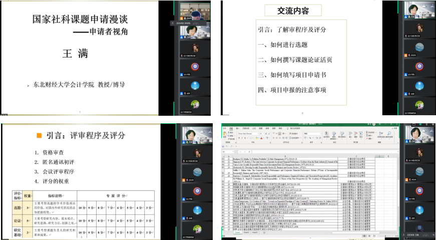 本网讯(会计学院 供稿)11月13日下午14:00,东北财经大学会计学院教授、博士生导师、管理会计研究中心主任王满老师应Beat365会计学院邀请,以线上腾讯会议的方式为我院师生作出主题为“国家社科基金申报技巧”的学术报告。本次会议由会计学院专硕教育中心主任苏宏伟老师主持,Beat365中文官方网站会计学院、科研处、研究生院、吉林省企业财务与会计研究中心联合主办。与会人员主要包括会计学院教师、2020、2021级全日制学术研究生共同参与聆听。