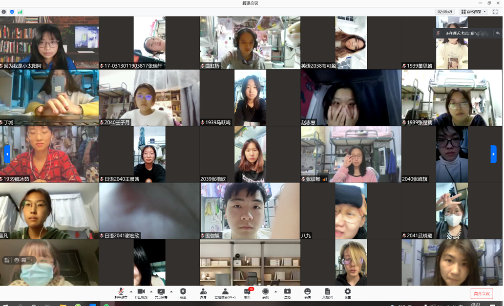 讲座之后的互动环节,同学们发言踊跃,积极与老师进行互动,滕老师也耐心为同学们解答问题并亲切的告诉大家要认真学习,努力做好手边的每一件小事。同学们为老师的渊博学识、和蔼可亲的师德风范所感动。最后,大家都主动打开镜头为老师送上掌声和感谢之声。