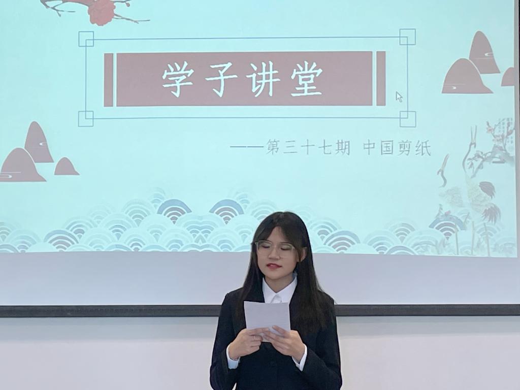 本网讯(图书馆 供稿)11月24日下午2:00由图书馆主办,校学生会学习部承办的第三十七期“学子讲堂”于图书馆三楼3010第三研讨室正式开讲。受疫情防控影响,本次“学子讲堂”以线上腾讯会议直播和线下小范围交流相结合的形式展开。本次邀请到的主讲人为外国语学院英语2141班王然同学,宣讲主题是:《中国剪纸》。图书馆参考咨询部王兰、滕云老师出席了本次活动。