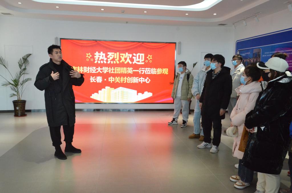 活动第一站,参观长春中关村创新中心。由长春中关村信息谷科技服务有限责任公司产业经理王潇带领学生参观,王经理向同学们介绍了中关村集团空间运营服务、专业科技服务、产业投资服务以及科技金融服务四大板块业务,并带领同学们了解了大信息、智能制造、软件、绿色能源、轨道交通等产业孵化方向及推动产业加速发展的加速器。