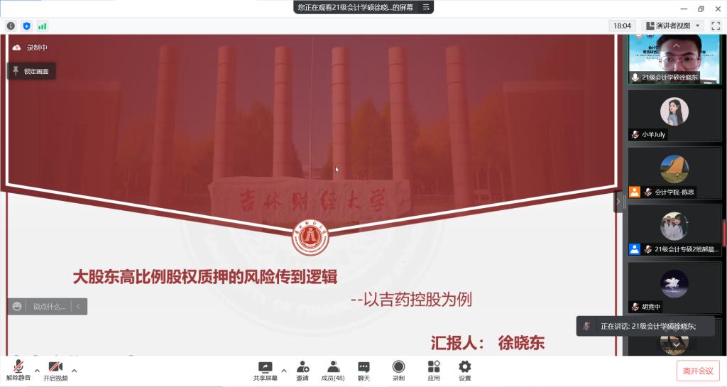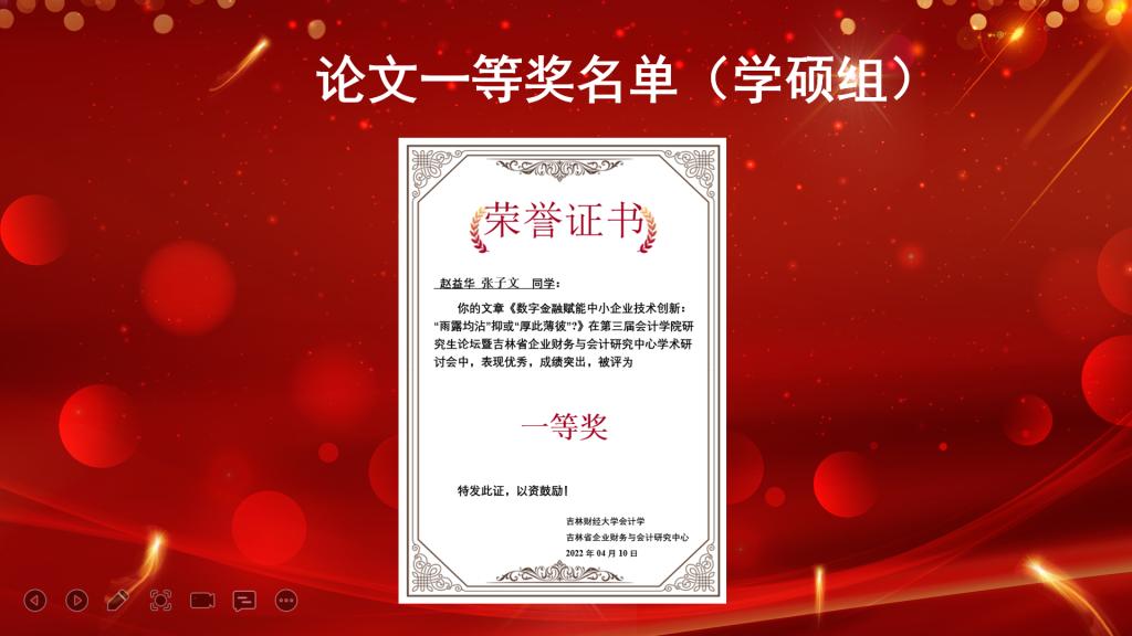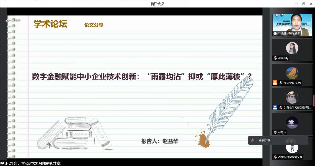 论坛闭幕式由会计学院院长梁毕明致辞,梁院长对为本次研究生学术云论坛做出贡献的指导、评委老师,全体投稿的研究生作者以及背后默默支持的家长们表示感谢,对参会的研究生同学们也提出了殷切嘱托,并为论坛的成功举办表示祝贺。本次论坛的举办激发了疫情期间同学们科研探索的热情,拓宽了专业领域研究的学术视野,培养了论文研究与撰写的综合能力,提升了会计学院学术交流的氛围,为研究生提供一个高起点、宽领域的科研交流平台。(审核人 梁毕明)