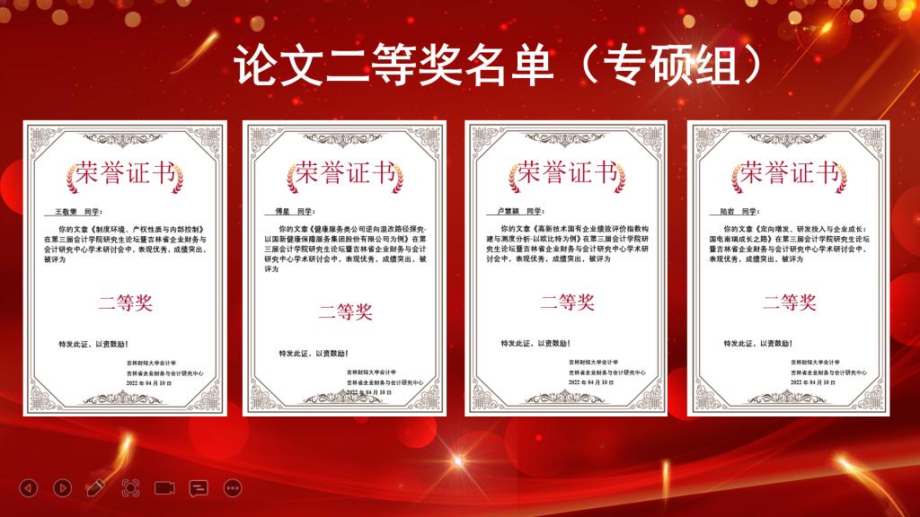 会计学院此次研究生学术活动历时4个多月,共收到参会论文44篇。经过学院8名青年博士教师从论文结构、语言表达和研究深度三个方面匿名盲评,最终筛选出投稿论文总量的60%(26篇论文)进行交流汇报,学硕11篇,专硕15篇。学术论坛交流中,会计学院8名青年博士教师作为评委再次从论文选题、论文结构、语言表达与PPT制作四个方面现场打分,最终评选出学硕组一等奖1名、二等奖3名、三等奖7名;专硕组一等奖2名、二等奖4名、三等奖9名。