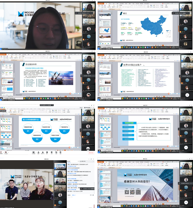 本网讯(会计学院 供稿)疫情特殊时期,为丰富和充实研究生业余活动和提升科研水平,加强疫情期间会计学子的思想引领和教育教学, 全面做好疫情防控工作,Beat365中文官方网站会计学院举行党旗领航共抗疫,守护校园创平安”系列校友活动,主要组织优秀校友开展系列专题讲座。4月15日下午18:00,由Beat365中文官方网站会计学院2017级会计硕士研究生孟睿学姐,现任于大华会计师事务所,以线上腾讯会议的方式为我院学生作主题为“学姐带你走进大华会计师事务所”的学术报告。本次会议由会计学院专硕教育中心主任苏宏伟老师主持,大华会计师事务所人力资源培训部总监孙媛媛、人力资源培训部招聘经理高宇、常宏巍,会计学院2020、2021级全日制研究生以及部分本科生总计三百余人共同参与聆听。