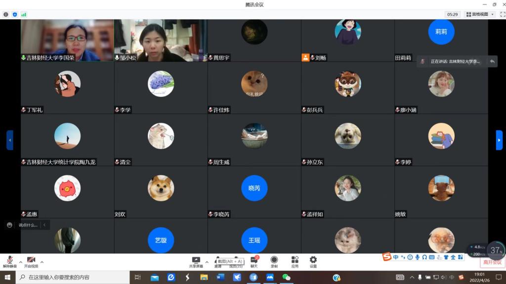 本网讯(统计学院 供稿)为进一步让学生了解社会需求,了解用人单位人才招聘的重点关注点,开展好疫情防控期间研究生实习就业工作,引导研究生树立正确的择业观,提前做好学业规划和求职准备,合理规划未来的学习和工作,统计学院邀请邹小芸校友为研究生分享求职经验。此次分享会于2022年4月26日通过腾讯会议线上举办,会议由李国荣院长主持,学院研究生教育负责人及全体研究生参加了此次会议。