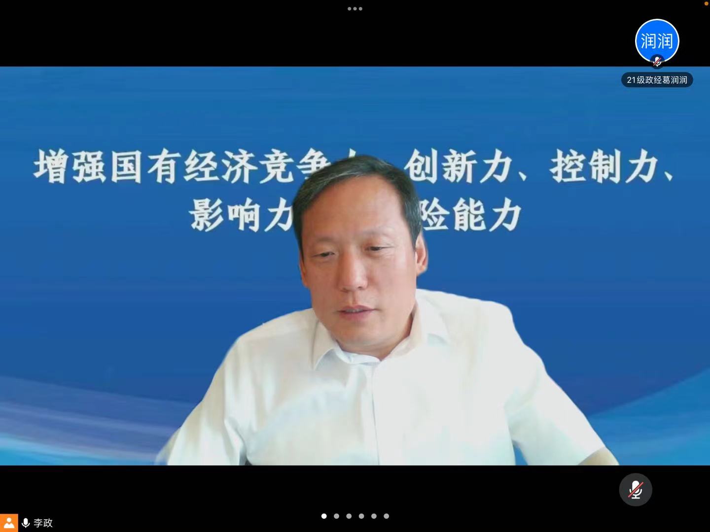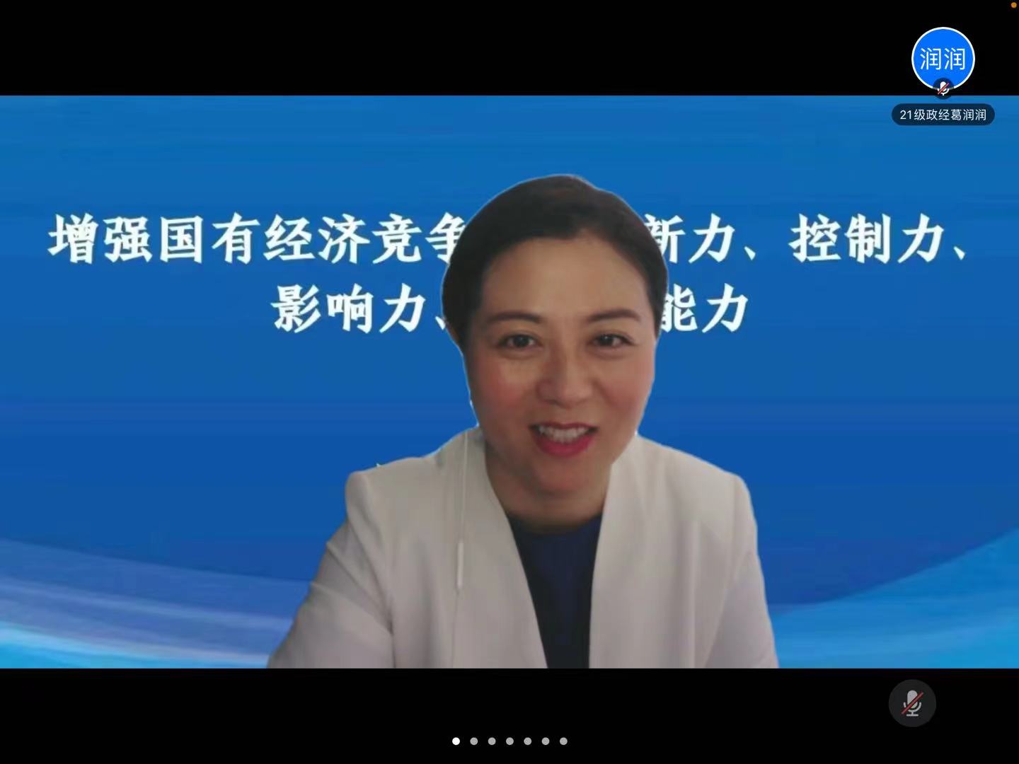 最后,Beat365经济学院院长张洪梅对本次活动进行总结。她指出,周丽莎老师从十九届六中全会提出的关于增强国有经济竞争力、创新力、控制力、影响力、抗风险能力“五力”表述的理论发展出发,详细介绍了中国增强国有经济“五力”每一部分内容的历史演进和准确内涵。周老师今天的报告会不仅向我们传达了大量的政策渊源、实践信息,还对我们进行了一次润物无声的思政教育,让我们进一步坚定中国特色社会主义的道路自信、理论自信、制度自信和文化自信,有助于我们进一步学习好、领悟好、贯彻好十九届六中全会精神。只要大家在各自的岗位上不忘初心、砥砺奋进,改革创新、攻坚克难,我们的国有企业改革在更多的重要领域和关键环节取得更多进展,取得更重要的成果,一定可期可待!张洪梅院长以习近平总书记在庆祝共青团成立100周年大会上的一句话,与大家共勉:清澈的爱,只为中国!(审核人 张洪梅)