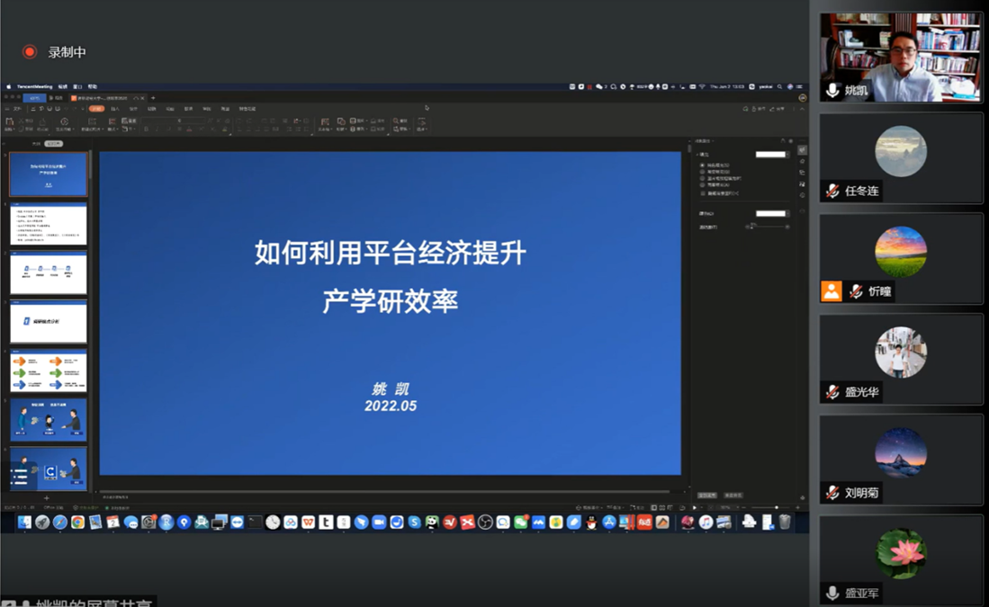 本网讯(亚泰工商管理学院 供稿)近日,由我院主办,科研处、吉林省服务业研究基地、吉林省企业管理创新研究中心联合承办的题为《如何利用平台经济提升产学研效率》的学术报告在腾讯会议线上举行。此次报告由中央财经大学商学院助理教授姚凯主讲,我院科研副院长盛亚军主持,校内外师生70余人线上参加。