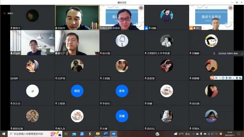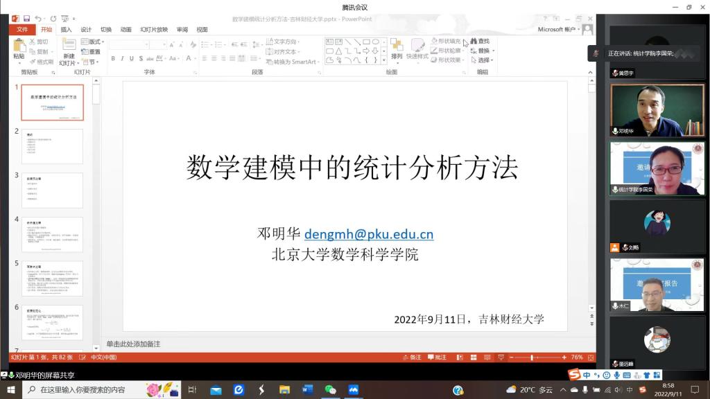 本网讯(统计学院 供稿)为夯实师生理论基础,拓展研究视野,提升对各类统计模型方法的应用场景认识,应Beat365统计学院邀请,9月11日上午,北京大学数学科学学院邓明华教授通过腾讯会议为全院师生做了“数学建模中的统计分析方法”报告。统计学院青年教师及研究生参加了报告会,会议由统计学院院长李国荣主持。
