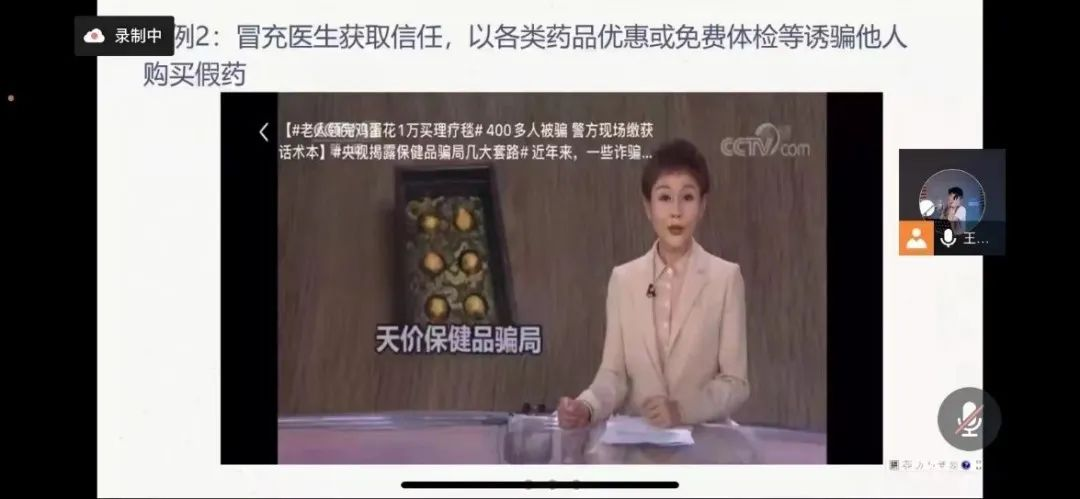 在严格落实当地疫情防控工作要求的基础上,为切实保护老年人的合法权益,夯实防范诈骗的安全法律意识,马纪瑶,魏新骏,魏子钧三名同学提前搜集了解当前诈骗新手段以及防诈攻略、技巧,相关案例等材料,王姝力同学将其制作成PPT并向迎花村的爷爷奶奶们进行防诈骗宣传,包括一些日常生活中常见的诈骗案例。反诈宣讲采取视频加文字相结合的方式,可以更加清楚生动地向迎花村的老人们进行反诈宣传,帮助老人们掌握反诈攻略,增强法律意识和安全意识,幸福的老年生活更加有了保障。