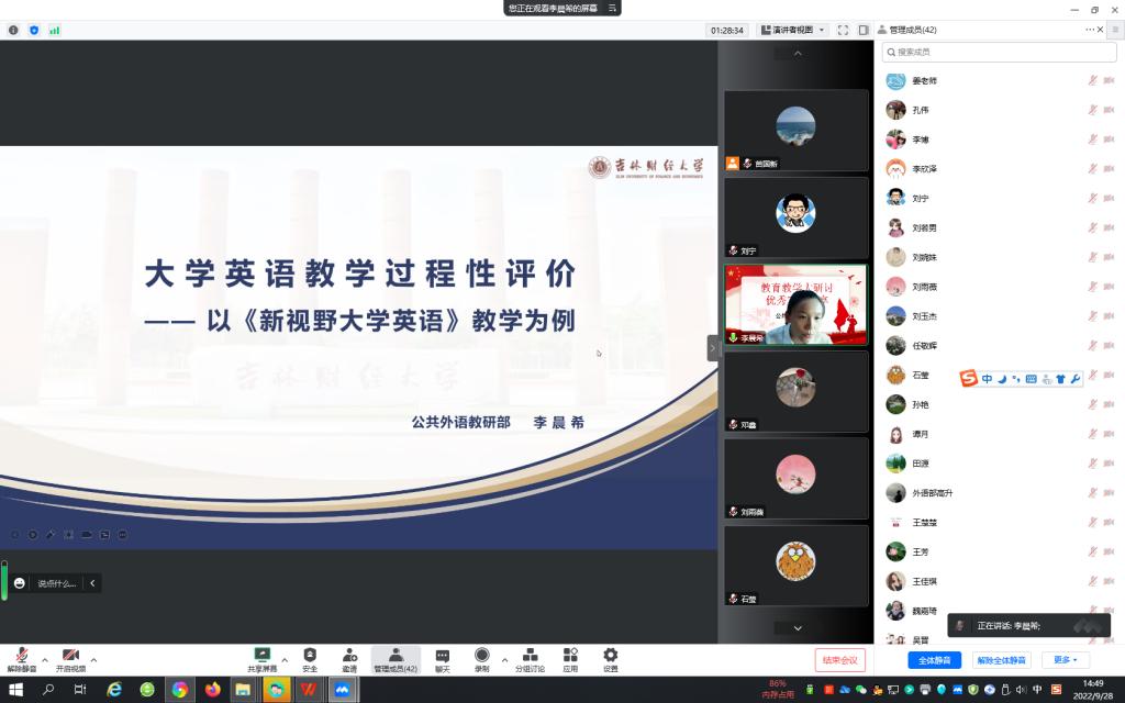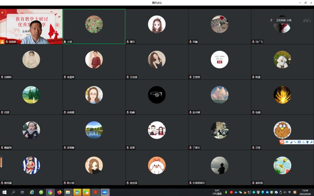 本网讯(公共外语教研部 供稿)为深入学习习近平新时代中国特色社会主义思想,认真领会习近平总书记关于教育的重要论述,全面贯彻落实全国教育大会精神,响应学校开展教育教学思想大讨论工作,根据学校有关活动要求,公共外语教研部于2022年9月28日下午组织召开了教学、科研能力提升系列活动之教育教学大研讨优秀案例交流分享会。公共外语教研部全体教师参加了本次优秀案例分享会,会议由教研部副主任苗国新教授主持。