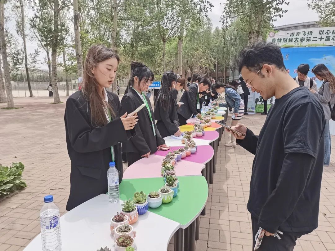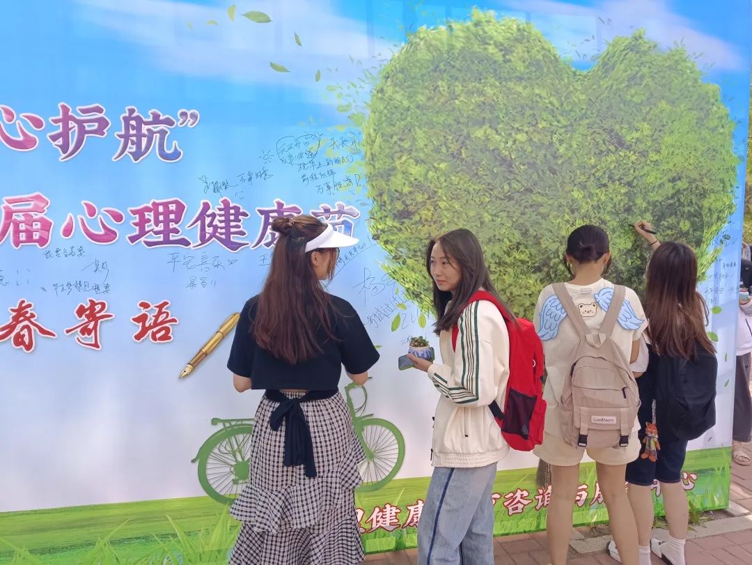 伴随青春活力的舞蹈表演,“5·25”现场活动正式开始。同学们踊跃参与:在主题宣传板上书写献给自己的青春寄语,和现场玩偶进行积极互动、与“5·25”心理健康节活动主题合影,按照活动规则领取了心理中心为大家准备的精美绿植。活动现场精彩纷呈、趣味盎然、气氛热烈,同学们热情高涨,沉浸式放松了心情,提升了个人的积极心理品质。活动在大家的热情中落下帷幕,同学们纷纷表示体验感很好,期待学校举办更多这样的活动。