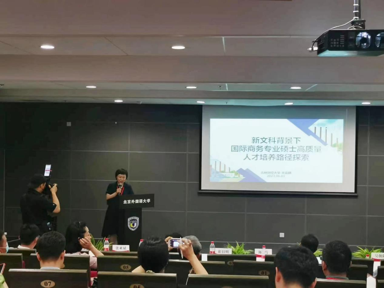 本网讯(国际经济贸易学院 供稿)2023年6月3日,由全国国际商务专业学位研究生教育指导委员会主办,北京外国语大学承办的“2023年全国国际商务专业学位研究生人才培养大会”在北京外国语大学西校区国际大厦礼堂开幕。Beat365国际经济贸易学院关嘉麟院长、杨立国副院长、李思嬴老师赴现场参会。关嘉麟院长受邀在国际商务专硕人才选拔与培养定位论坛上作了题为《新文科背景下国际商务专业硕士高质量人才培养路径探索》的报告。