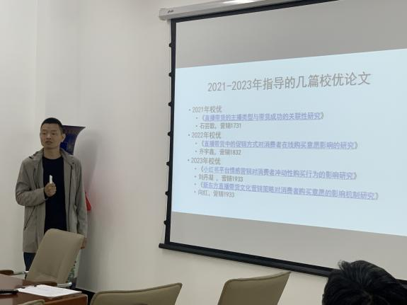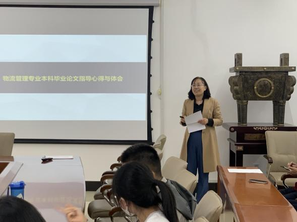 然后,各专业获评校级优秀本科毕业论文的指导教师代表分享交流。市场营销系主任刘文超副教授结合经验从学生自主选题、正面激励、写作过程、论文指导与修改等方面进行了分享。物流管理系沙颖副教授结合物流管理专业论文设计建模的特点,从论文选题、研究框架、研究方法、指导过程等方面进行分享。人力资源管理系主任段伟花教授从优秀毕业论文内容、逻辑结构等方面做了分享,并交流了人力资源管理系在本科毕业论文指导选题前、选题中和论文撰写三阶段的管理举措。旅游管理系李阳老师结合校优论文的指导经历,重点分享了论文选题、论文架构设计内容。工商管理系主任霍晓艳副教授就本系获评校优的本科毕业论文进行分享,剖析了优秀毕业论文特征,并结合本科毕业论文普遍问题提出了下一步提升毕业论文质量的做法。