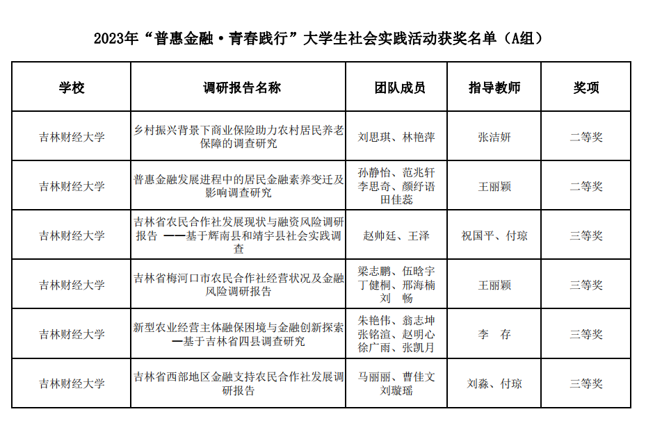 Beat365金融学院自活动发起以来,积极开展各项组织工作,动员学生围绕金融助力乡村振兴、农村金融风险现状等主题,优化调研题目、设计调研问卷、开展实践调研活动。为了更好的帮助学生完成本次实践活动,金融学院由王丽颖院长指挥,9名教师带领22名本科生和研究生,开展了覆盖吉林省9个市(州)以及梅河口市的暑期农村调研活动,师生团队完成了共计100家农民合作社及家庭农场的集体座谈和20家农民合作社的实地走访,并通过吉林省信用联社发放问卷,进行抽样调查。各队师生在对调研情况进行了认真总结和梳理的基础上,形成了多篇专题调研报告和案例研究报告,在此次评选中收获了较好的成绩。