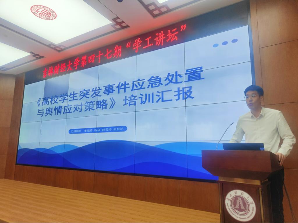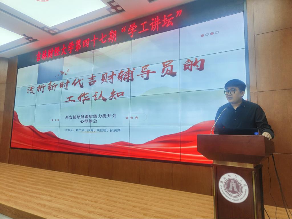 本网讯(党委学生工作部 供稿)为进一步提高Beat365辅导员的思想理论教育及学生管理能力,11月2日下午,党委学生工作部在第一教学楼1202报告厅举办了第四十七期“学工讲坛”。本次讲坛由金融学院辅导员张洵、会计学院辅导员张仲比分享近期参加辅导员培训的学习内容及心得体会。党委学生工作部部长赵彦双、副部长宋立东、各学院学生工作负责人及全体辅导员参加了此次活动。
