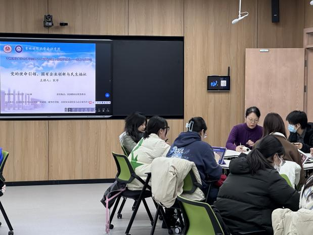 本网讯(会计学院 供稿)11月22日,会计学院在新经济(数字经济)创新创业实训中心举办2024年“两金”项目申报辅导系列之国有企业专题报告会,本次报告会邀请吉林大学经济学院宋洋教授、杨思莹副教授、孙哲副教授分别主讲。学院院长梁毕明、部分教师及研究中心助理研究员、学术硕士研究生等参加学习,报告会由财务管理系主任张兰副教授主持。