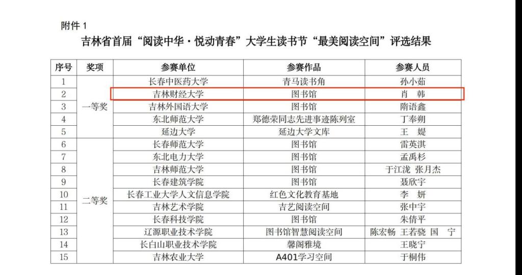 本次读书节活动由吉林省教育厅主办,旨在激发大学生阅读兴趣、拓展阅读视野、提升阅读素养、培养思维能力、助力价值观塑造,活动期间共收到全省高校报送作品776个。经专家评审,确定“最美阅读空间”“最美朗读者”“我是讲书人”等系列活动一等奖各 5 个、二等奖各 10 个、三等奖各 15 个。(审核人 赵彦双)