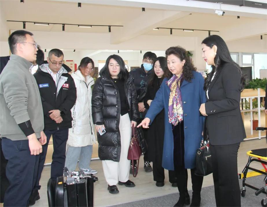 随后,蔡向东一行在集团董事长温艳辉的陪同下,参观了坐落在吉林市高新区南山街3365号的谦福智慧康养综合服务平台。此平台已经投入使用,投资600万元,占地面积1000平方米,营业面积2000平方米。平台配备吉林数字家政服务共享平台,包括家政服务员和家政企业,信用信息数据库、家政信用平台、居家上门服务证、大数据展板及行业共享平台;配备智慧康养及智能护理器具展示基地,配套线上线下软件管理平台及安宁康养、中医智能疗护、PBL智慧医养、老年照护,智慧康养产业2050主体实训室等;拥有理论教室、模拟场景实操教室、多功能厅等教学场地,优秀的专兼职教师队伍30余人。蔡向东一行参观了线上的智慧养老、智慧家政、智慧职教综合云平台,线下的适老化产品展示、康复理疗体验、家政、志愿服务展示等多个功能区,以及职业教育培训学校。各种先进的适老化设备和样板间,让来访师生对“科技养老”产生了新的认识。蔡向东对平台的运营理念、服务管理等工作给予高度的肯定,并与集团董事长温艳辉分享了很多宝贵经验与建议。