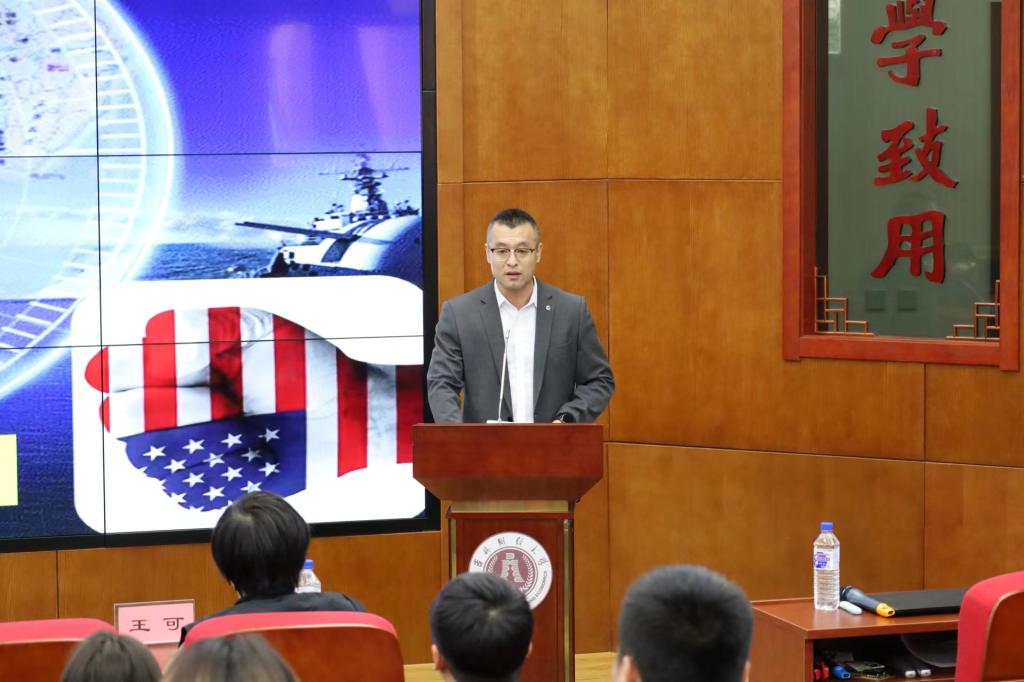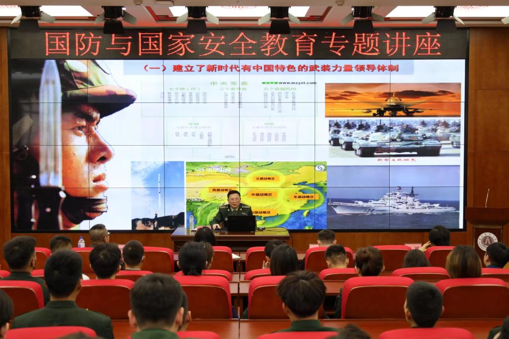 陈维辉教授以“世界百年变局与国家安全”为题进行了讲座。陈教授首先从国际力量、地缘政治、综合国力、世界治理体系等四个方面阐述了为什么当前是“世界百年变局”。其次,陈教授从现实角度深入浅出地讲解了百年未有之大变局到底“变”在何处。最后,陈教授从我国海、陆、空、火箭、战略支援等多军种装备现状,列举了我国国防建设成就,同时也以生动的案例,警示同学们务必提高国家安全意识,为国家的稳定和繁荣发展贡献力量。